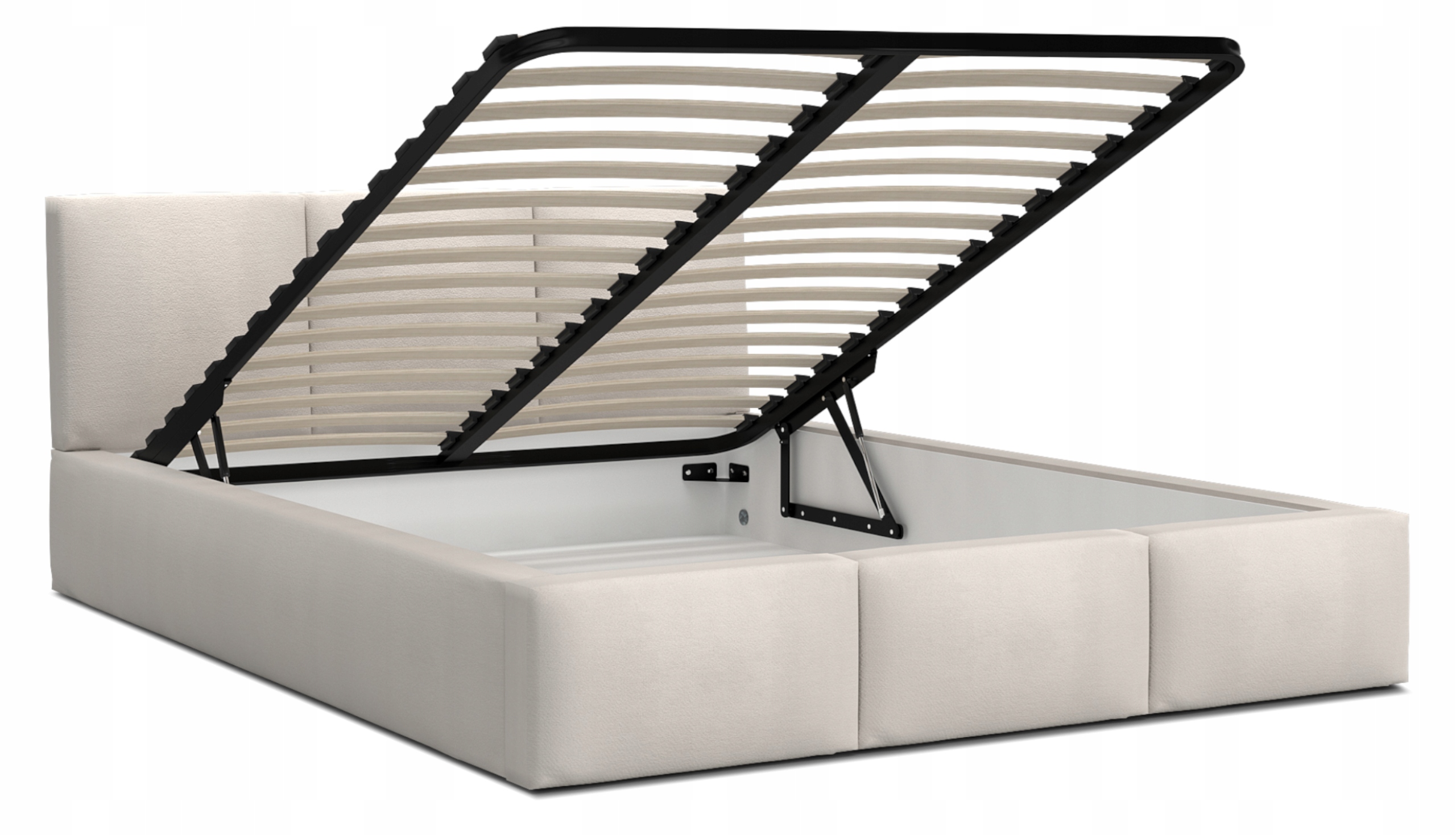 > Przestronny pojemnik na pościel znajduje się pod całym łóżkiem